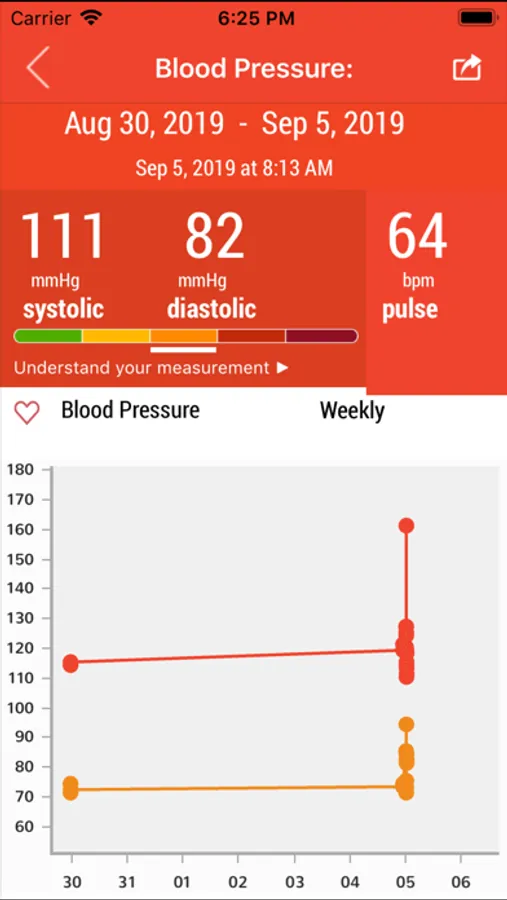 Manage your hypertension with instant indication, trending, and the ability to share results with your physician or family member. Gone are the days of manually recording your daily readings.