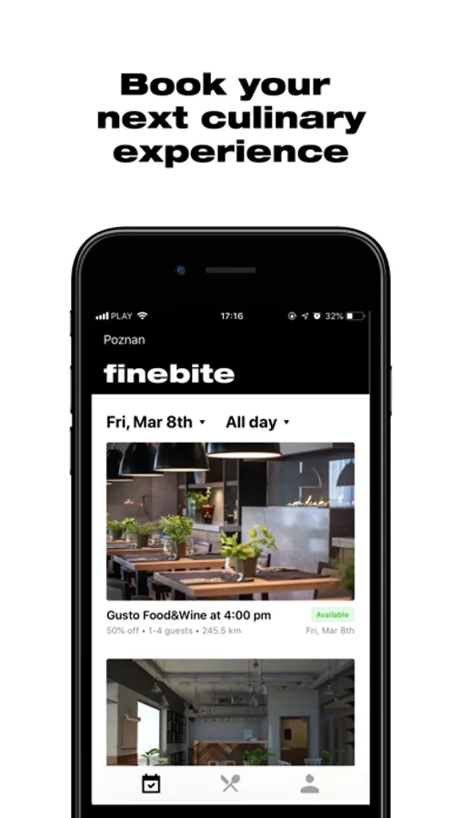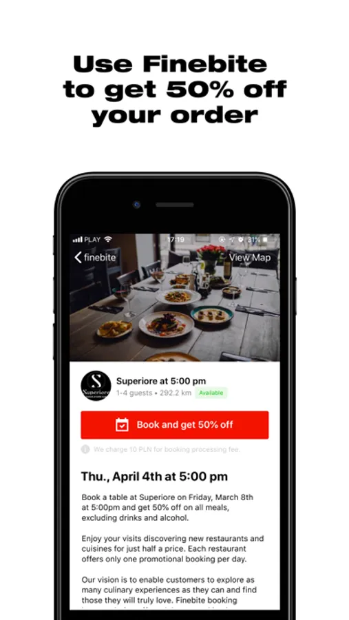 Finebite lets you choose from over 500 selected restaurants at which you can book a table and get 50% off your order. In return, we ask you to provide an anonymous review after the visit.