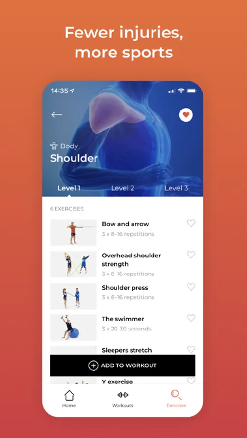 Under “Sport”, you will find your sport among the 40 summer and 15 winter sports, and as another option you can find injury prevention exercises targeting specific body parts. In other words, for each of the 55 sports, the exercise program is tailored to the injury risk profile of the sport. Likewise, under “Body”, you will find exercises developed to prevent problems with the shoulder, back, groin, hamstring, knee, and ankle.