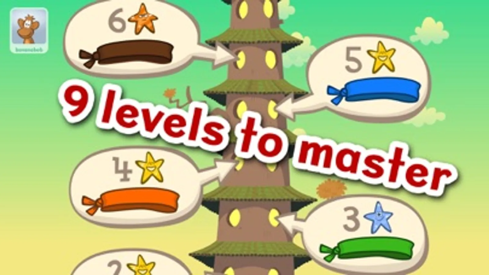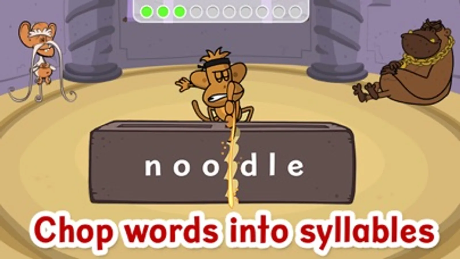 Enter the Chimp Fu tower and begin your training. Each level begins with a lesson that explains a different type of syllable.