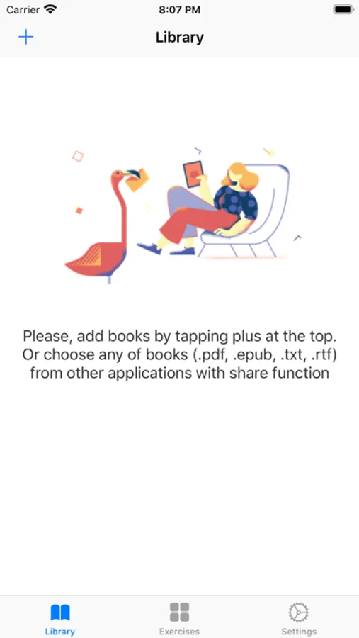 - Text formats available for now: .epub, .txt, .rtf, .pdf