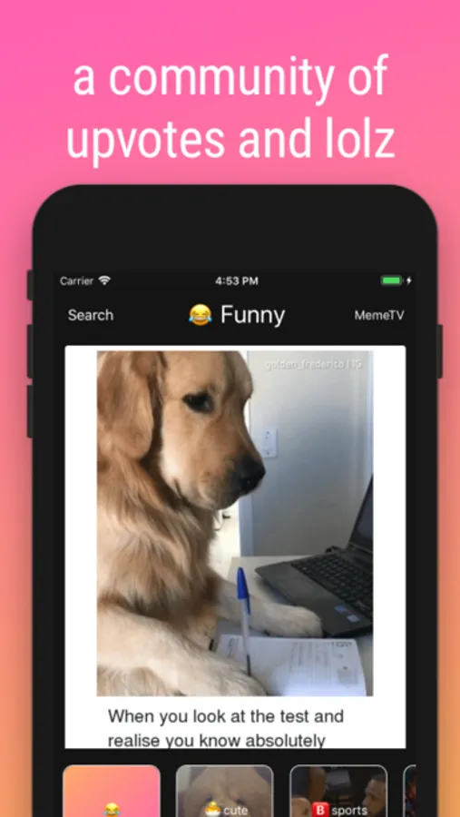 The world loves hilarious stuff. MEME is a community of funny content posted by funnier people. Find and share the funniest and most viral pictures and video. A daily app where you see funny %!@? and create funny %!@?.