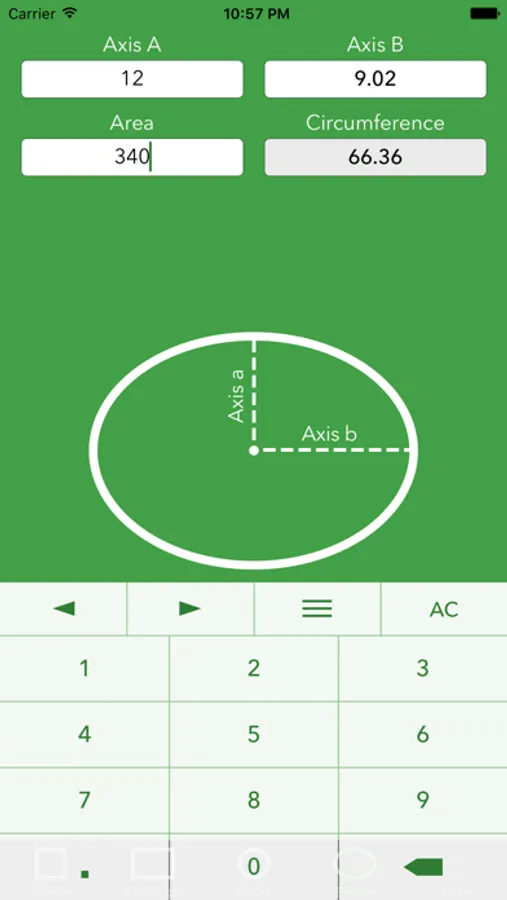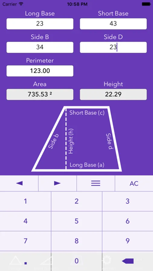Geomulator is a geometry calculator that will help you quickly find unknown values for a variety of common 2D shapes: square, rectangle, circle, ellipse (oval), triangle, right triangle, trapezoid.
