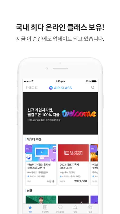 대한민국 1등 동영상 강의 플랫폼 “에어클래스”를 앱으로 만나보세요.