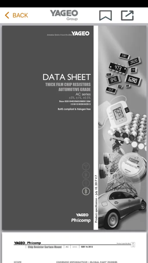 The YAGEO app provides convenient access to YAGEO’s product datasheets. Users can navigate by product type or search by keyword. The publications are stored locally providing fast access without the need for continuous Wi-Fi connectivity. The YAGEO app also automatically notifies users when datasheet updates are available, eliminating concerns over outdated product information.