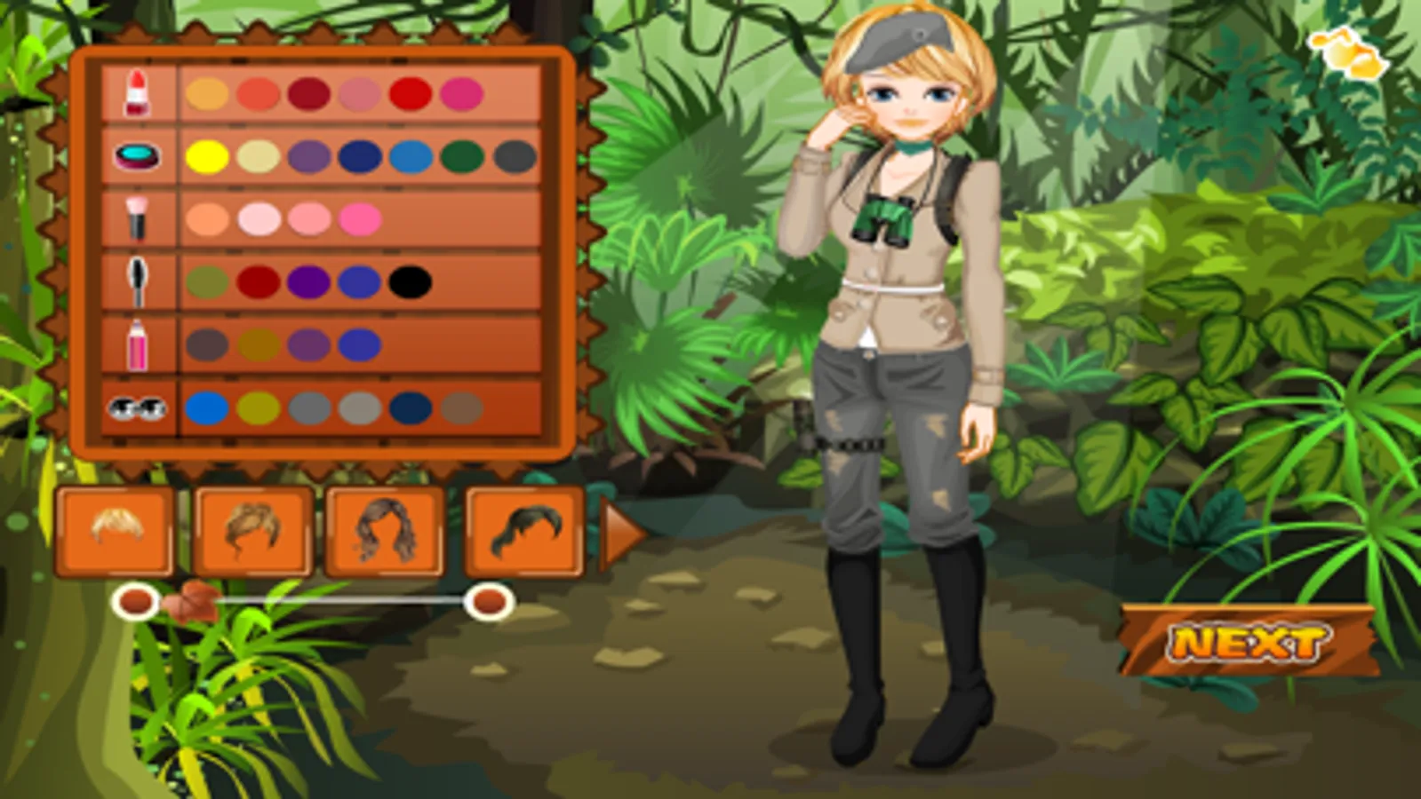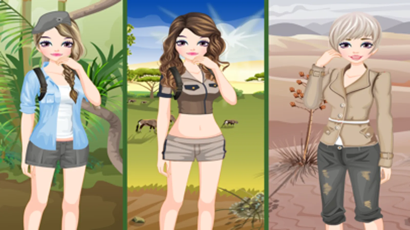 Play this dress-up game in the jungle with three girls. Linda, Lola and Lydia are going into the jungle to look for lions, tigers and elephants. But before they can leave, they need to have the right clothes. The safari look is what they are looking for. Find all three girls the right make-up and jewels. Then look for clothes and shoes. Change as often as you want. Come on, hurry up, I can hear the roar of the tigers from here. It is time to leave for this safari.