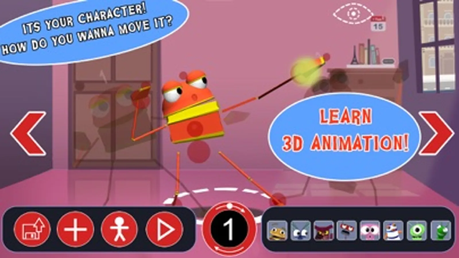 *9 Pre-built 3D cartoon characters lets kids quickly and effortlessly learn the basics of 3D animation.