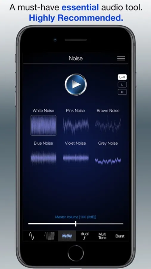 • Even play back different kinds of NOISE – White, Pink, Violet, Grey, Brown, Blue is also supported.