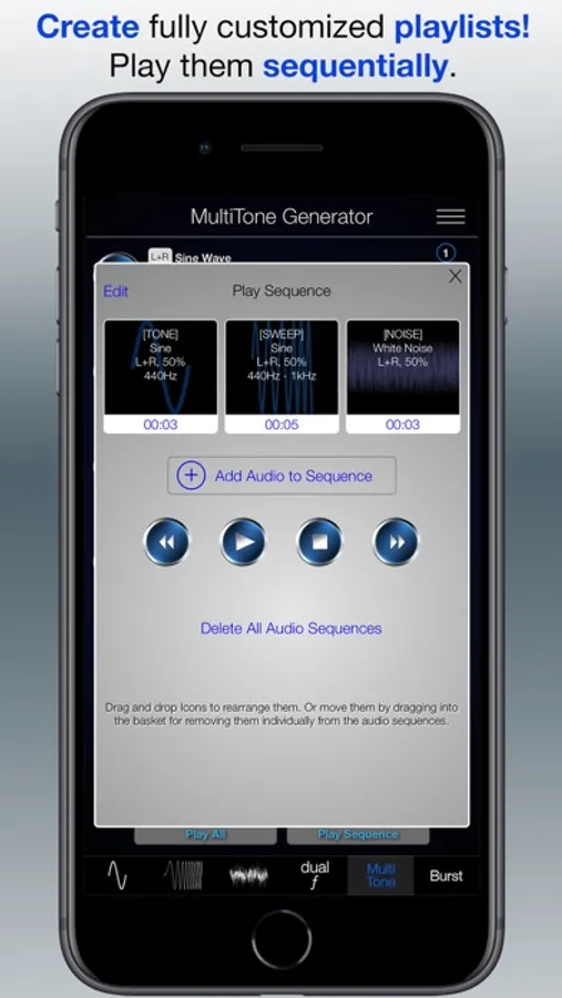 • And SAVE an endless amount of CONFIGURATIONS (Frequency, Sweep, Noise) for later quick access and direct playback function.