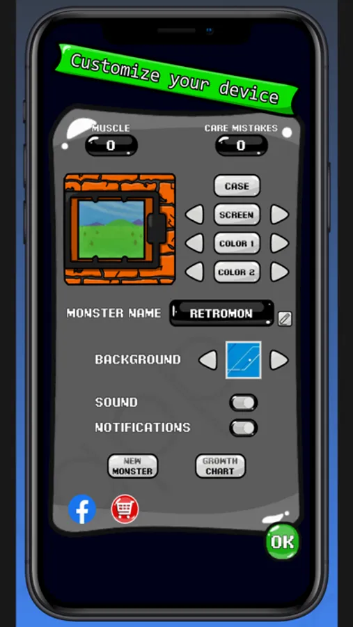 Customize your monster's house and case, change color, styles and environments. Personalize it on your very own way.