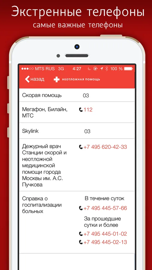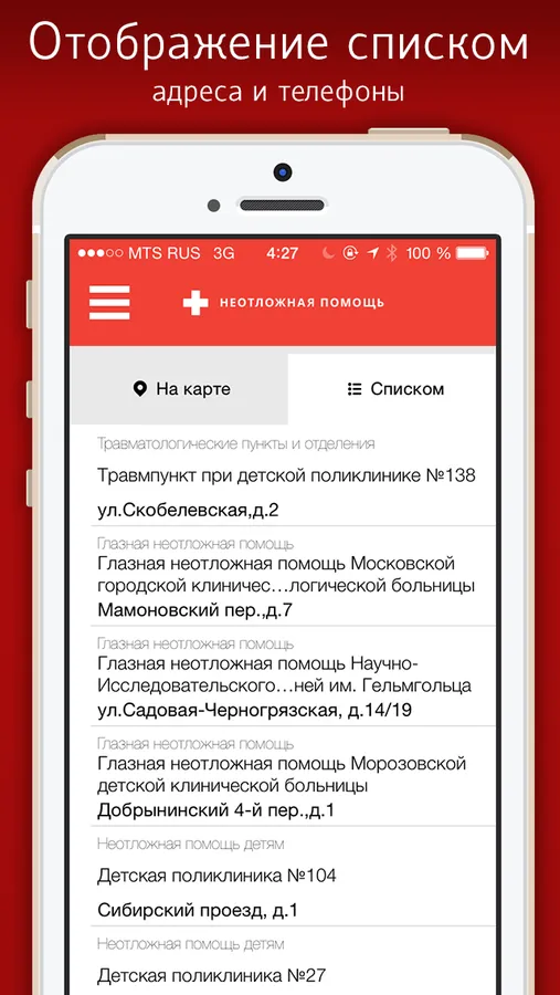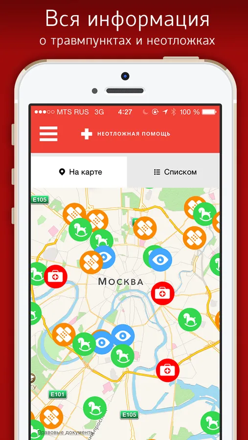 Мобильное приложение "Неотложка" позволяет найти ближайший пункт неотложной помощи в Москве. Пункты неотложной помощи можно отфильтровать по различным типам (травмпункты, детская и взрослая неотложки, глазная помощь), по времени работы, округу. Здесь же можно посмотреть необходимые телефоны. Если на мобильном устройстве разрешено автоопределение вашего местоположения, то сервис сам предложит вам ближайшие неотложки.