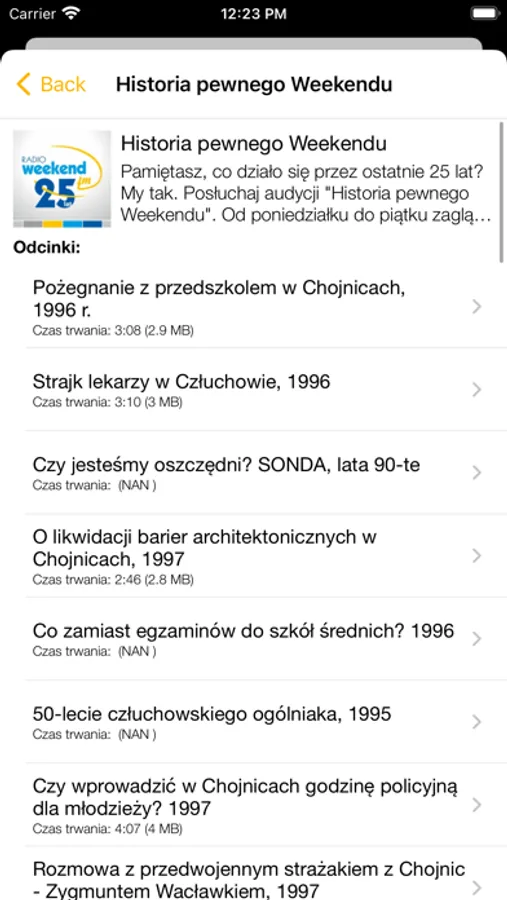 - informacje o nazwie audycji oraz imieniu i nazwisku prowadzącego audycję