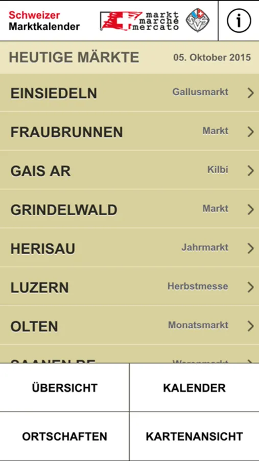 Die App des Schweizerischen Marktverband, dem Berufsverband für den Schweizerischen Markthandel, gibt einen Überblick über aktuelle und künftige Märkte.