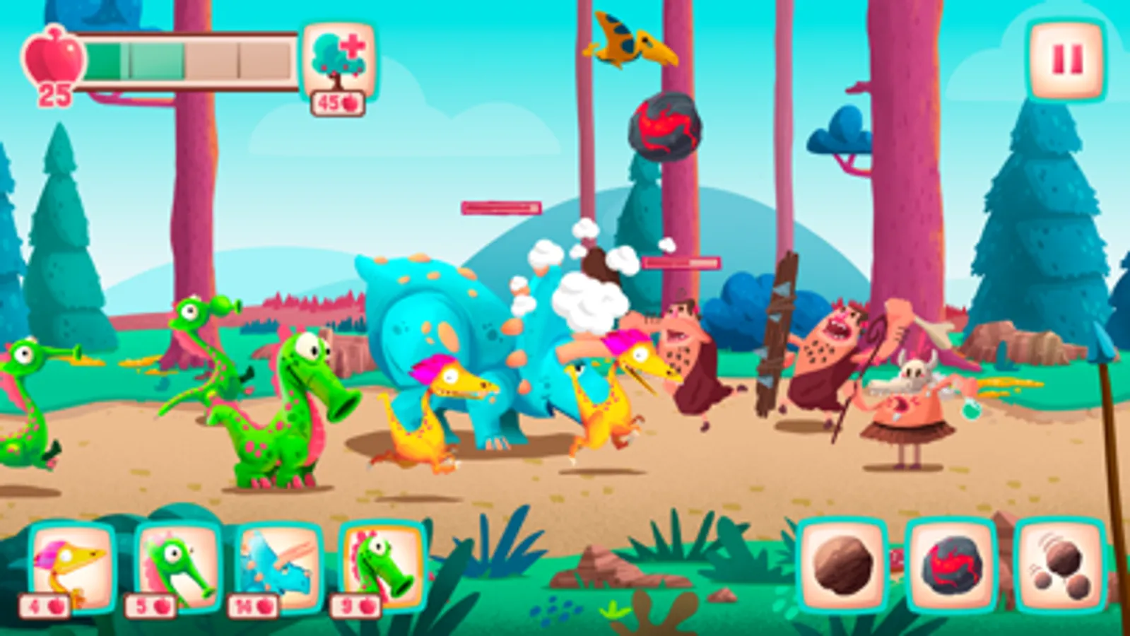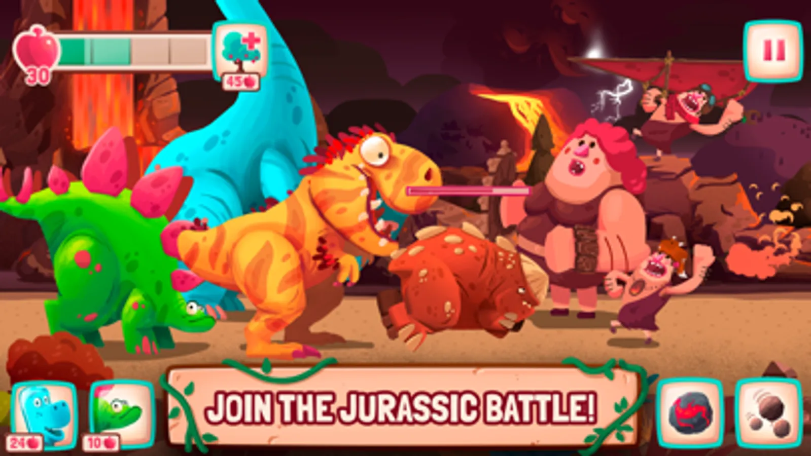Lead the dinosaurs in a Jurassic tug-of-war battle against primitive humans to defend your egg from their merciless appetite. Build ground defenses, deploy aerial attacks, and summon dinosaurs to avoid extinction.