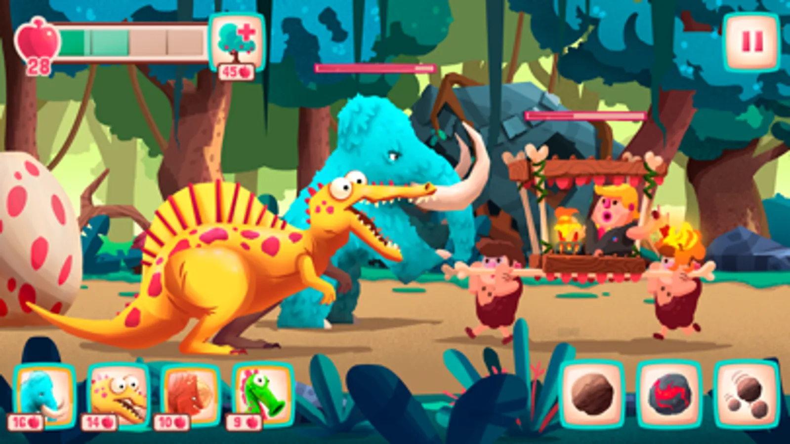 Strengthen your dinosaurs, upgrade your arsenal, reinforce your defenses, and laugh - or panic - at the cavemen’s stubborn attacks.