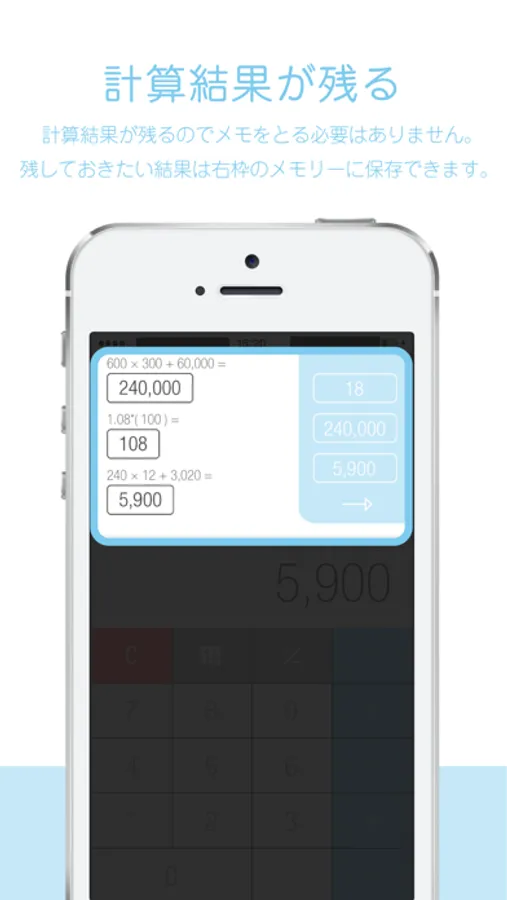 ■ひとつひとつの計算結果が履歴として残ります。 もちろん結果をコピーして他のアプリで使うことも可能です。