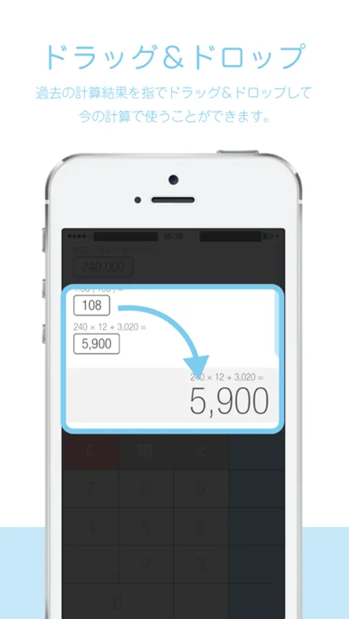 ■過去の計算結果を指でドラッグ&ドロップして今の計算で使うことができます。