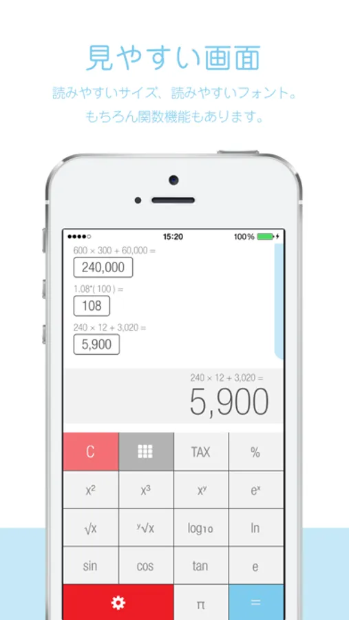 ■ボタンの配置も無理なく指が届くサイズで片手で手軽に計算できます。