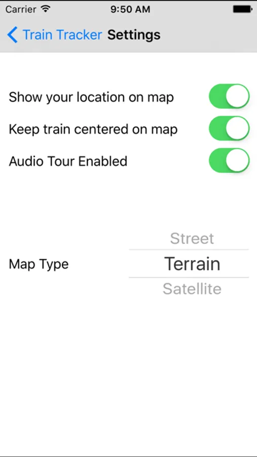 Note: The audio tour uses your phone's internet access to play the clips. Some phones may have limited coverage in some areas of the park. Your battery will be exhausted faster if you have the audio tour turned on. To turn off the audio tour for the current session, click the speaker icon on the Train Tracker page. Or go to Settings to turn it off for all sessions.