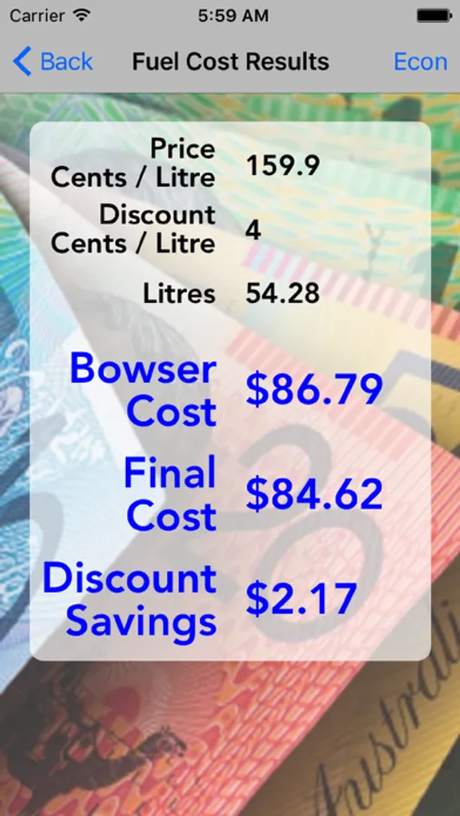 “Fuel Check” is an app designed to be simple and quick to use. It will determine and check whether the fuel bowser has calculated the correct fuel cost given the fuel price per litre and the number of litres transferred. It will also allow you to apply any fuel discount you may receive to check that the final fuel cost at the cashier is correct.