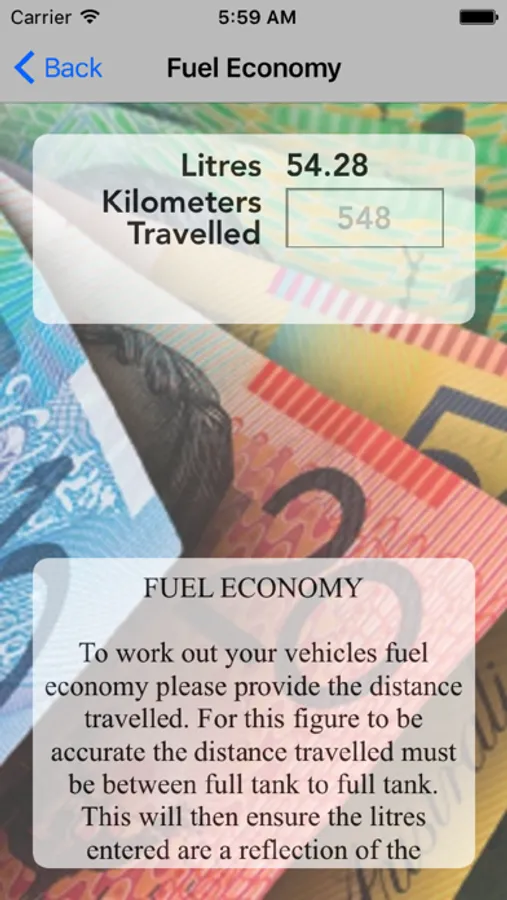 “Fuel Check” is an app that has the potential to save you money by either making sure that you are not overcharged when filling your vehicle or tracking your vehicles fuel economy and showing you trends that may cause you to use more fuel.