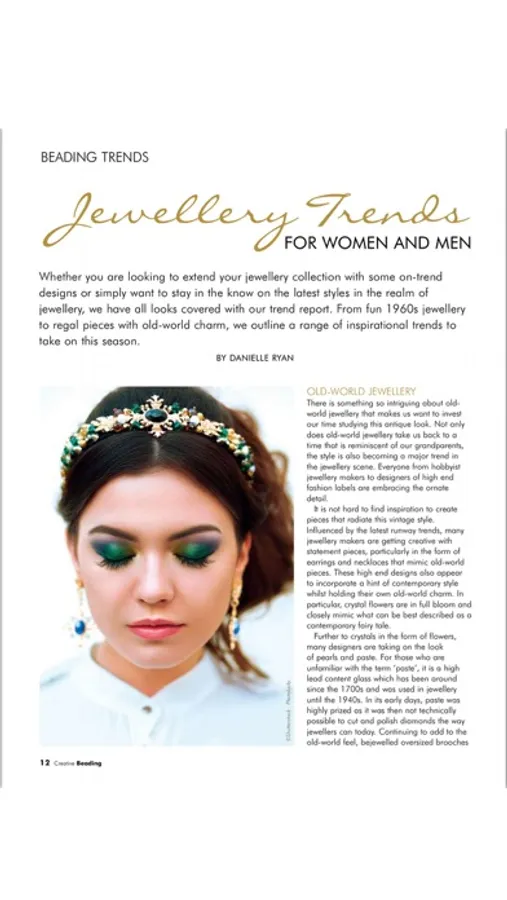 Be inspired by Australia's favorite beading magazine, containing projects for beginners and beyond from Australia’s top jewellery designers and expert trends, tips & tricks.