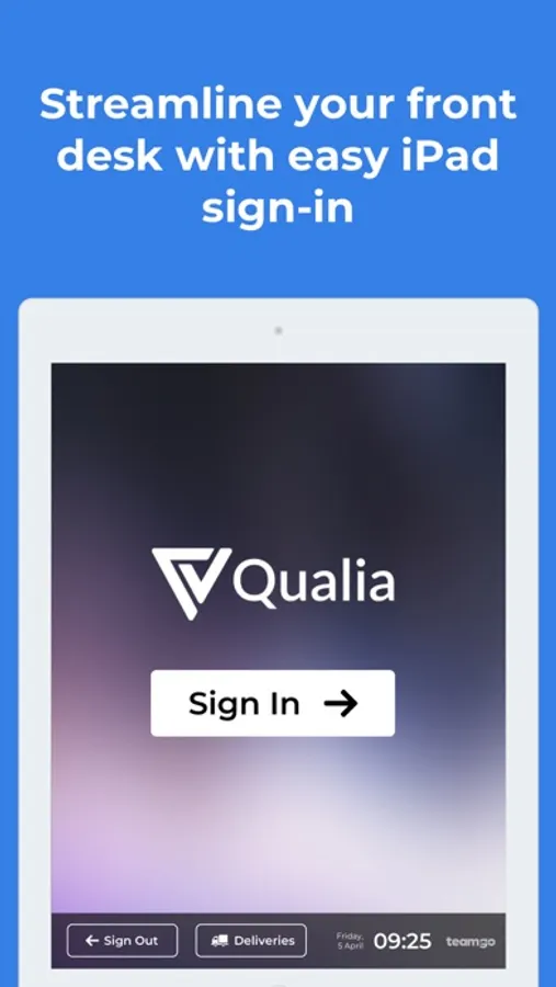 Simple sign up for an account and configure all your settings online. Download and install the free Teamgo iPad app and login with your username and password. You then choose the kiosk you wish to display on the ipad and install this in your reception area, the iPad becomes your own custom check-in kiosk. You can then include options like badge printing.