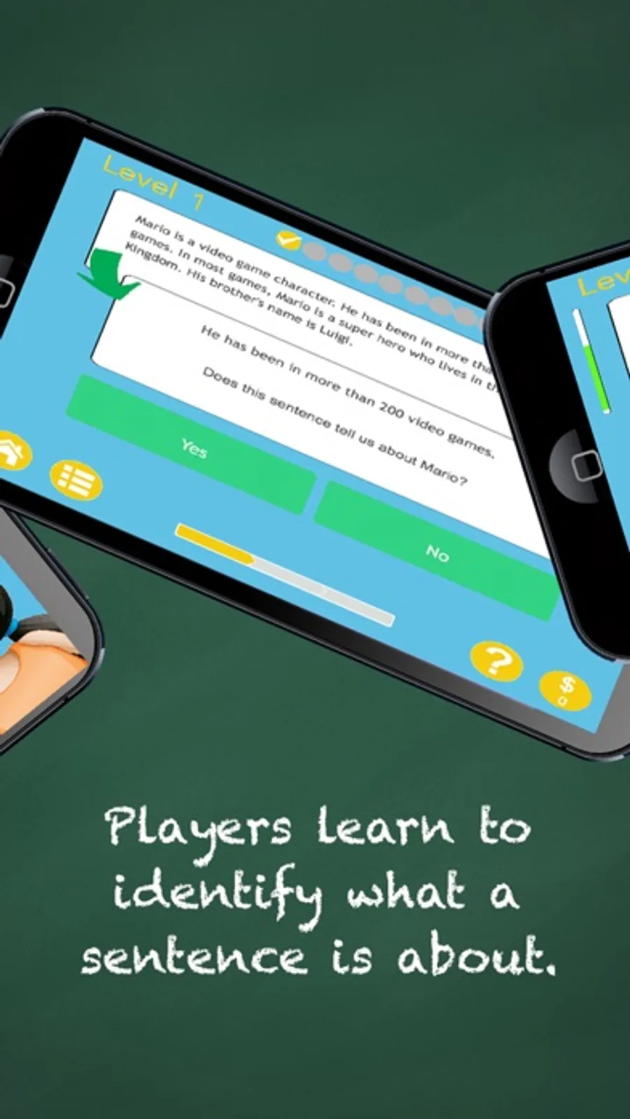 'Main Idea -Sentences' builds this comprehension skill in a fun, game-like environment. The skill is developed step-by-step until mastery.