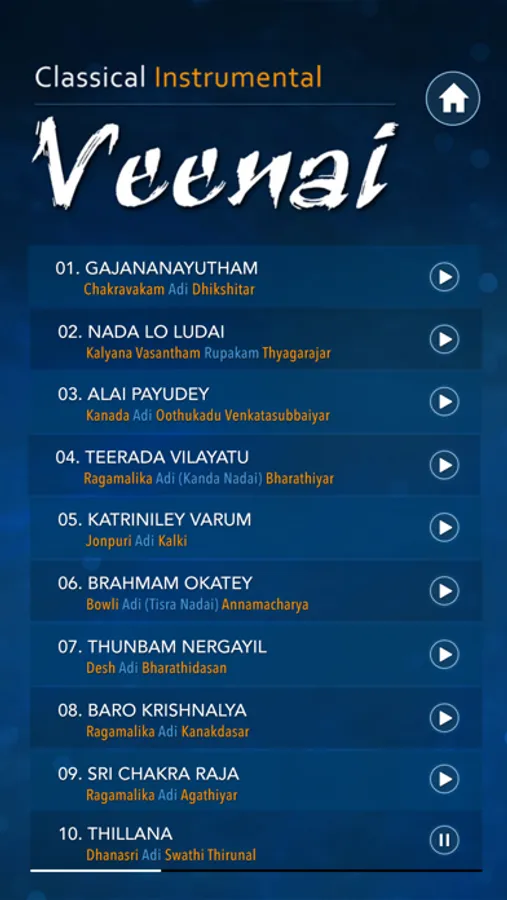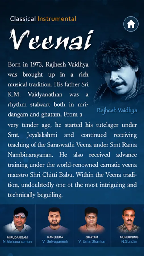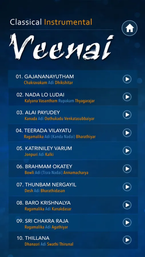 Listen to one of the most enchanted music on Veena by Rajhesh Vaidhya. This App has a collection of Famous composers like Papanasam Sivan, Gopla Krishna Barathiyar,Swathi Thiurnal, Thyagaraja, and Purundaradasar.