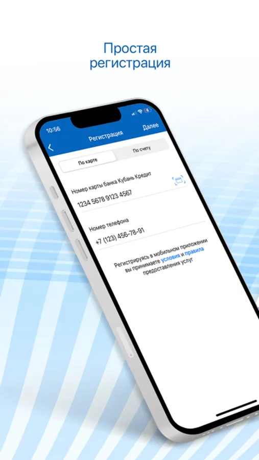 Пройдите легко и быстро регистрацию в приложении, и получите доступ ко всем возможностям сервиса «Кубань Кредит Онлайн». Если Вы уже зарегистрированы в сервисе «Кубань Кредит Онлайн»», то сможете войти по заданному Вами ранее логину/паролю. После первой авторизации в приложении выберите удобный Вам способ доступа: по коду доступа или Touch ID/Face ID.
