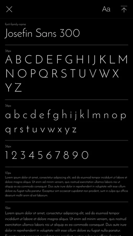 A font viewer app that helps designers choose a typeface for their project from a variety of different fonts. While at the desk, on the go or during lunch. Now fonts for iOS (system-installed), Google Edition(fonts at Google Fonts), and Font Awesome are available.