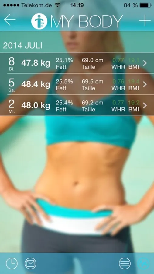 Im Modul My Body können Sie Ihre individuellen Werte wie folgt eingeben: