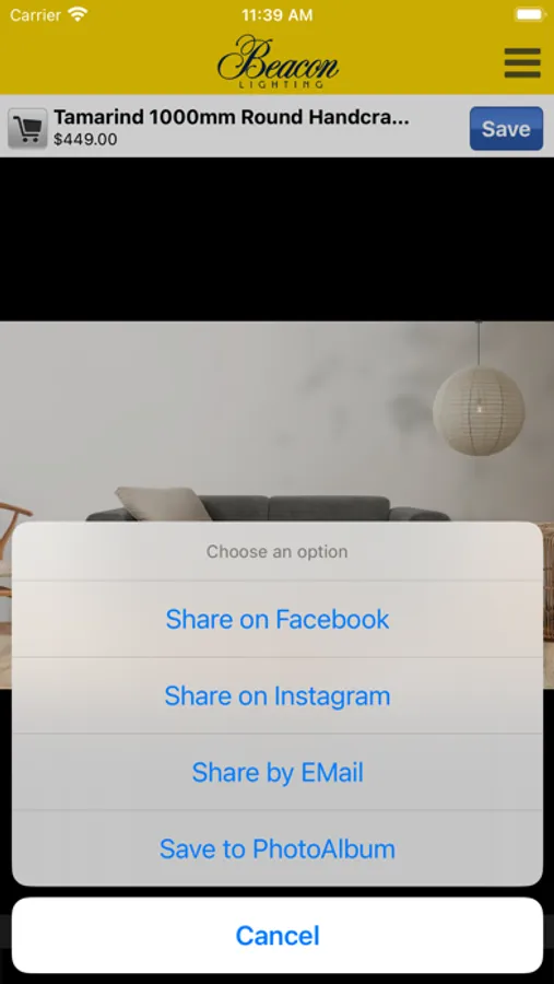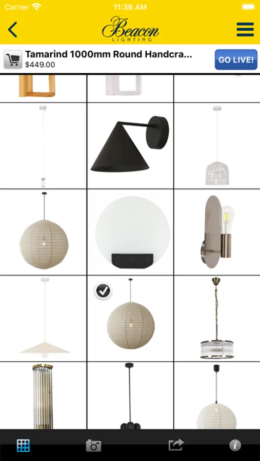 Wouldn’t it be great to see how the lights you love will look in your home before you buy them? Now you can! With our app, you can browse through our huge product range and see how a design or colour you like will look in your home. Then simply click on the shopping cart to make your purchase.