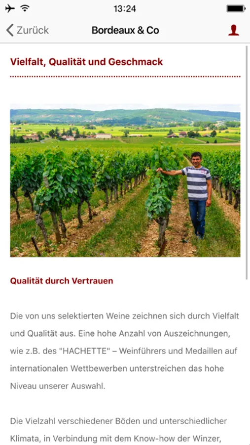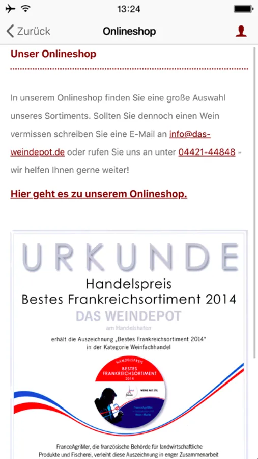 Sie erhalten mit dieser App Informationen über unser Weinsortiment und die Zusammenarbeit mit unseren Winzern. Über den Onlineshop können Sie direkt Ihren Lieblingswein bei uns bestellen.