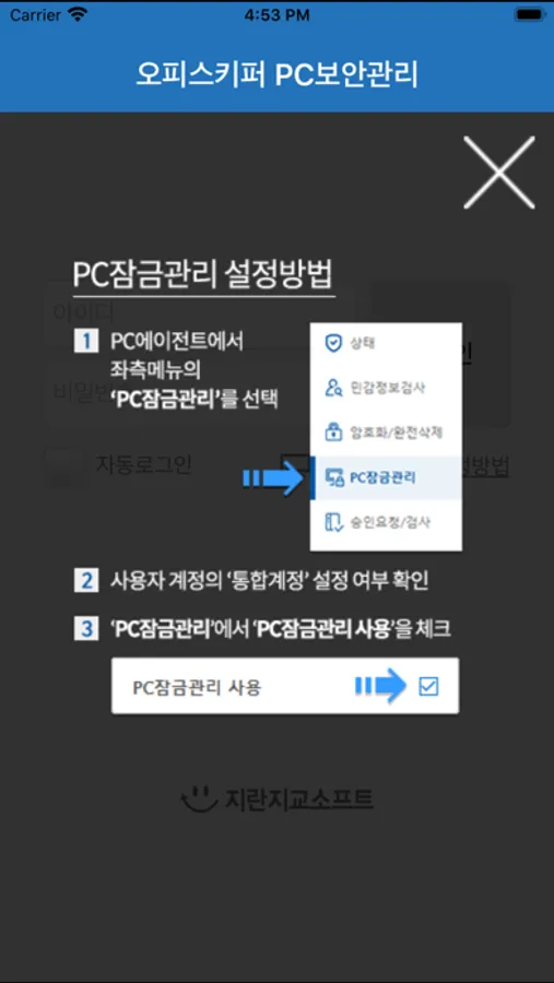 - 본 서비스는 지란지교 PC보안 솔루션 "오피스키퍼"에 가입된 고객에게 제공되는 서비스 입니다.