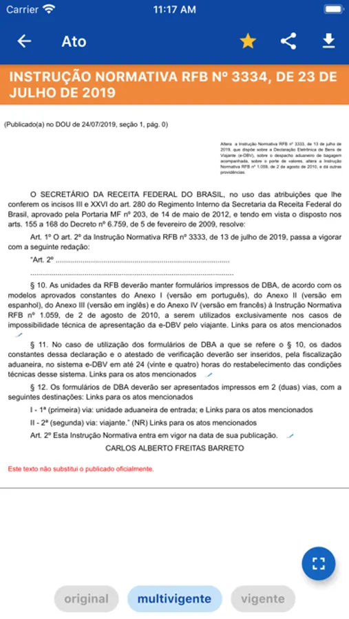 - consultar as versões "multivigente", "vigente" e "original" da maioria dos atos