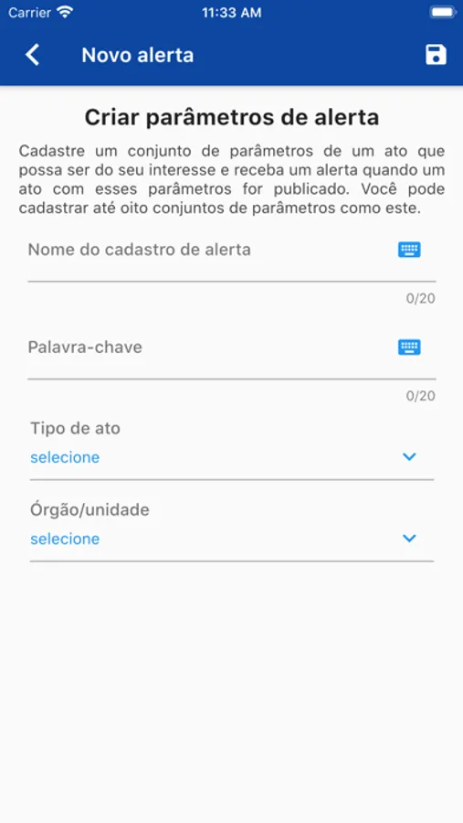 - receber alertas quando atos que satisfaçam os parâmetros de interesse forem publicados
