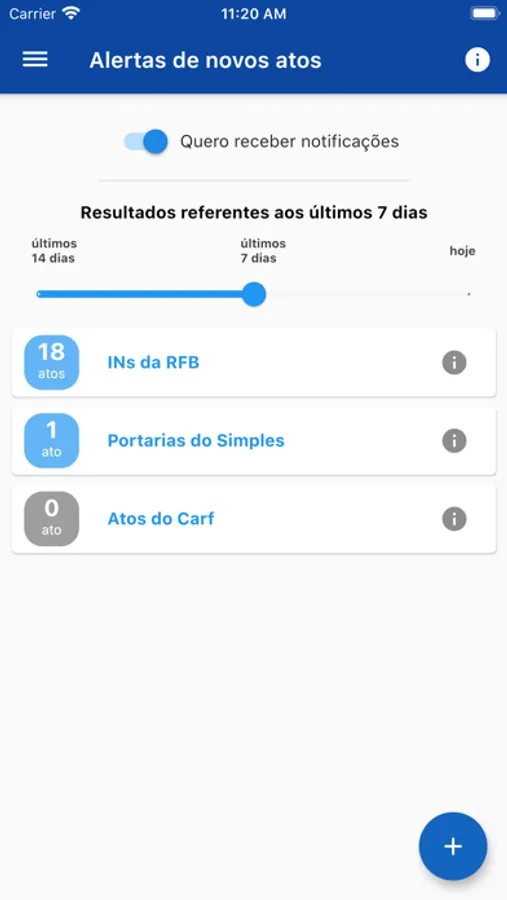 Este aplicativo possibilita o acompanhamento diário dos atos publicados pela Receita Federal na Seção 1 do Diário Oficial da União. Permite também consultas a textos atualizados de mais de 75 000 atos publicados pelo órgão ao longo das últimas décadas.