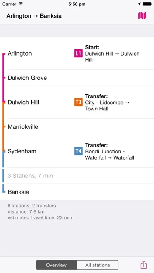 ROUTE PLANNER - instantly finds the fastest route and displays it on the map including transfer stations.
