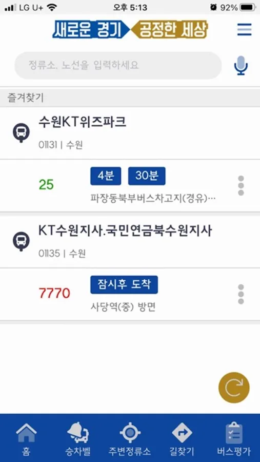 * 주로 이용하는 버스노선 및 정류소에 대한 즐겨찾기 기능