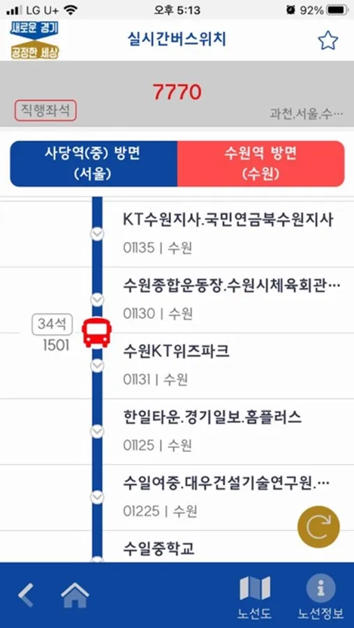 * 그래픽 노선도상에 실시간 버스위치 및 M버스의 잔여좌석을 안내하여 버스운행상태의 가독성 제고
