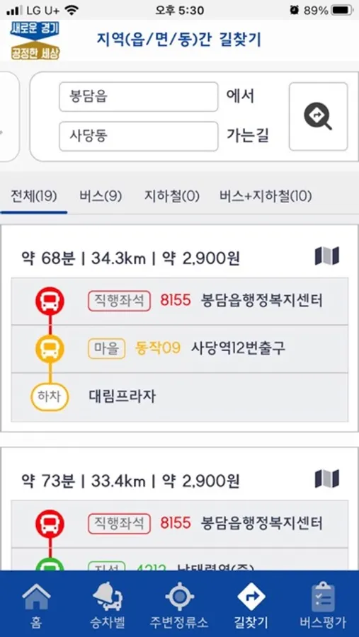 * 경로검색 결과 제공
