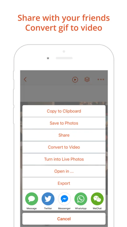 - Direct share GIFs to Twitter, Facebook Messenger, Wechat, QQ