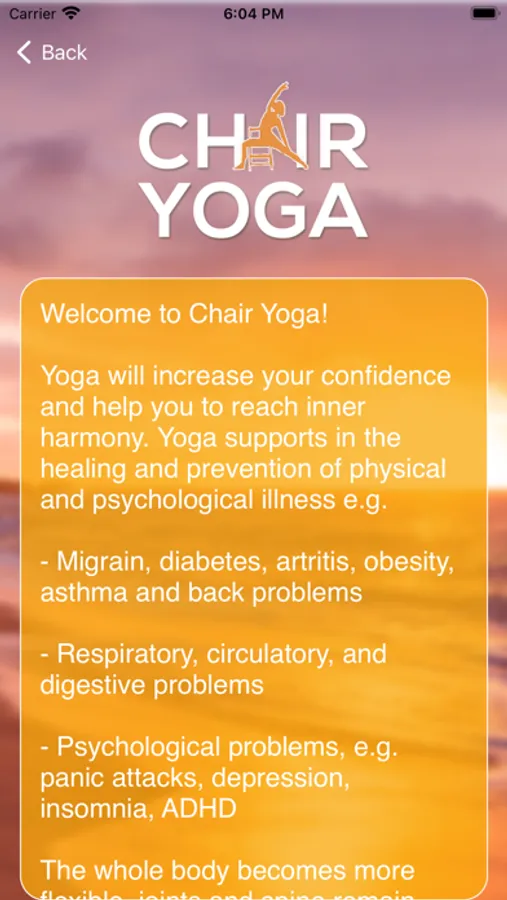 This fully illustrated app contains 14 easy-to-master exercises to heal and relax with Chair Yoga.