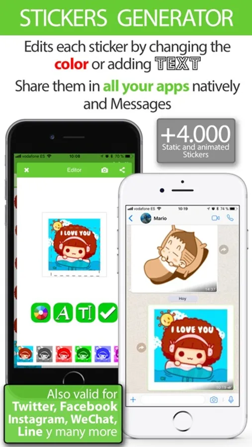 More than 4,000 stickers and emoticons to share with your friends. You can also edit them all by changing the color and entering the text you want.