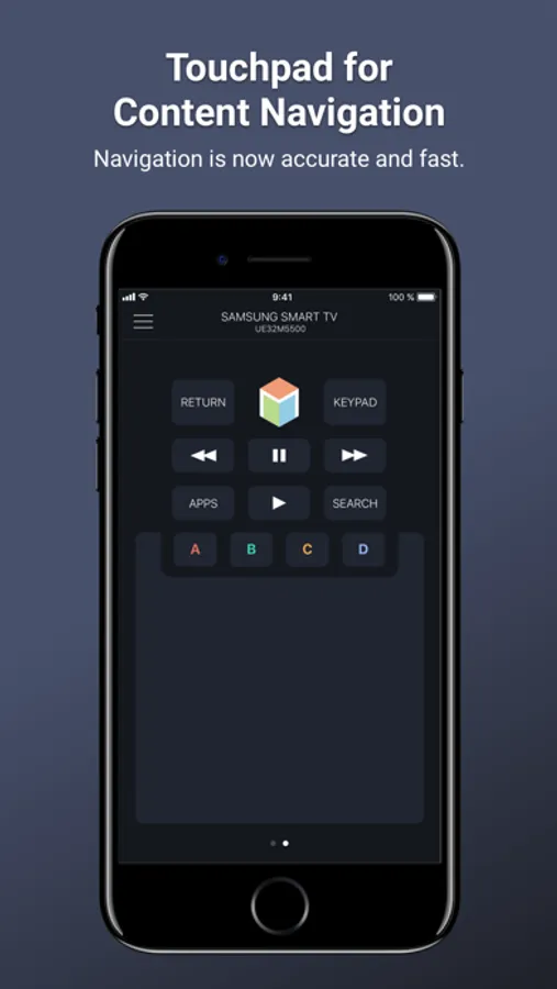 Remotie is an elegant and functional remote control with keyboard and touchpad for your Samsung Smart TV.
