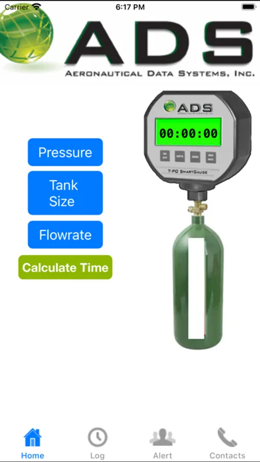 There are three required inputs that are necessary to use this app and they are the size of the oxygen tank in cubic feet, the existing bottle pressure and the flow rate. Once these variables are inserted a time remaining will appear in the green display window mounted above the tank.