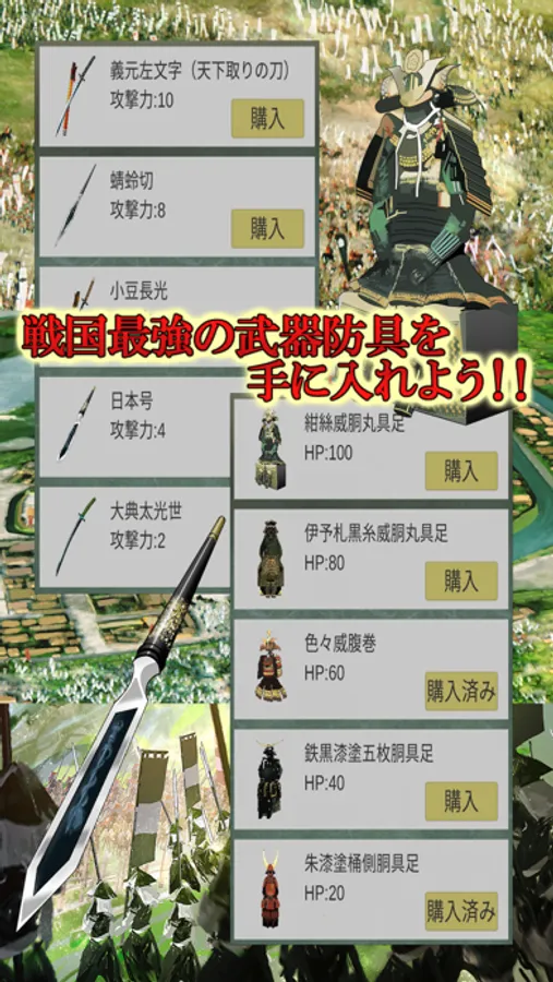 戦国最強の武器防具を手に入れて、さらに強くなれる!!