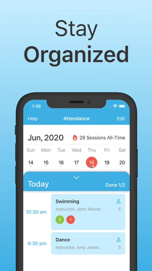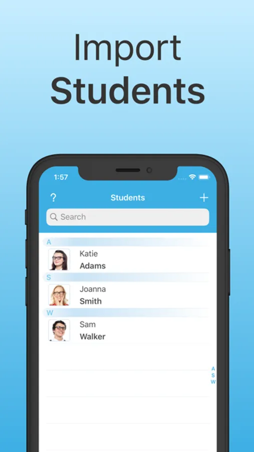 Effortless and straightforward setup. Various attendance marks and notes help to stay on top of the attendance tracking process. Exportable reports save time and make it easy to track attendance in multiple classes or events. Collaboration allows you to work together with your team. Available on iPhone and iPad.