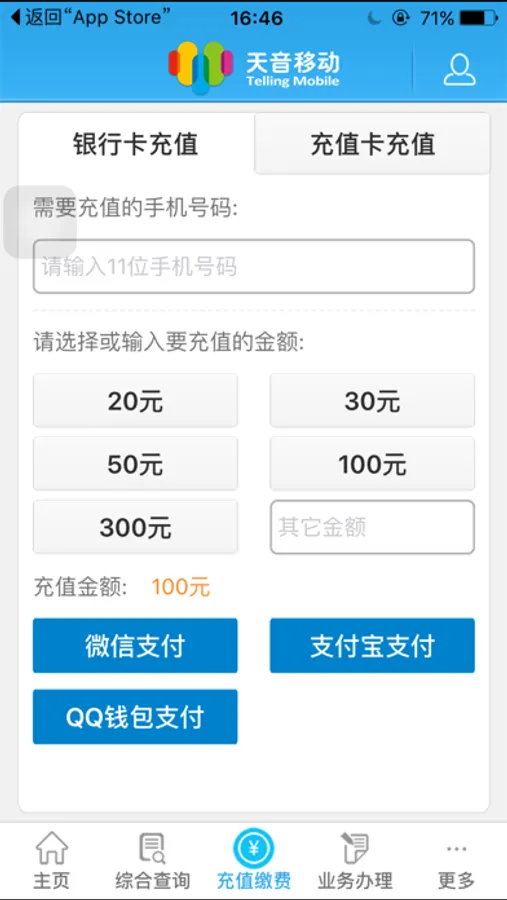 3、170号码充值缴费,支持微信支付、支付宝支付和QQ钱包支付。